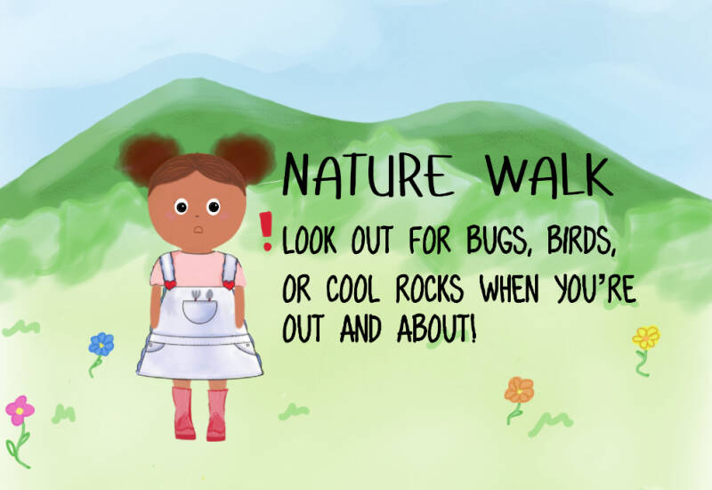 Going outside for a walk helps you feel more relaxed, boosts your energy, and lets you discover the amazing things in the world around you. On your walks you can listen to the sound of birds chirping, see all the animals around, and enjoy the fresh air.